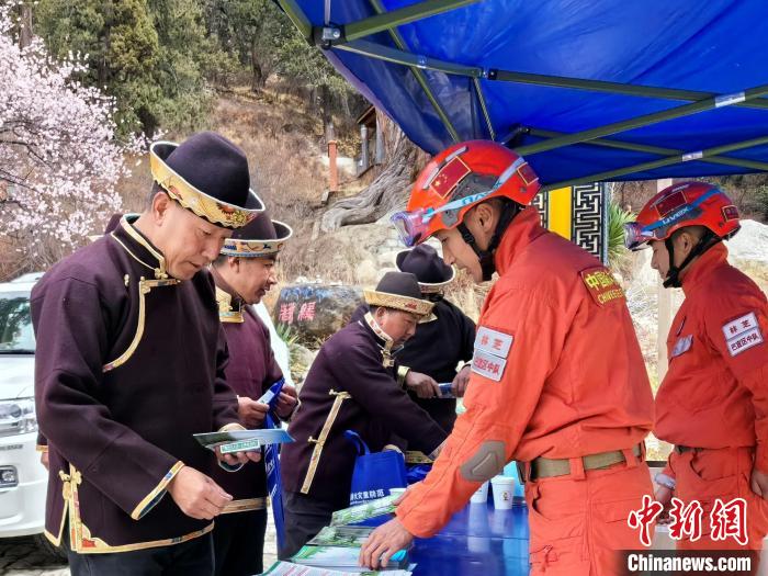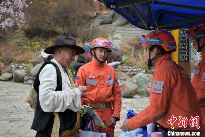 圖為消防員正在開展防火宣傳知識(shí)普及。西繞拉翁 攝