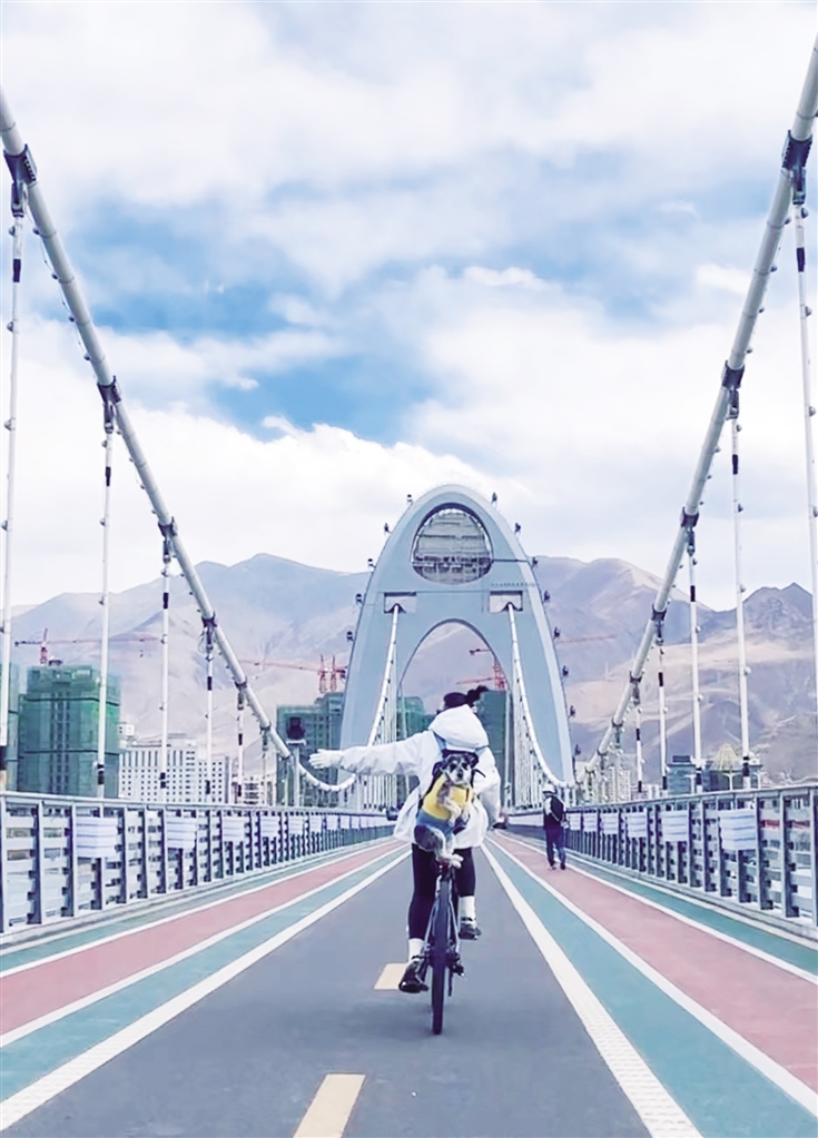 走訪過程中,記者了解到,當(dāng)前市民熱衷騎行出門的原因不一,或考慮性價比,或是為了圓兒時的騎行夢,但更多的是為欣賞春日的拉薩街頭風(fēng)光。微風(fēng)中搖曳的嫩柳,街道上被車流帶起的紫葉李花瓣,混著花香與泥土清香的空氣……在閉塞的車窗中,人們或許會因復(fù)雜的路況、不斷調(diào)換的擋位與堵車的煩悶而錯過這些近在咫尺的春景,但騎行不會。“這么美的春日,我可不想只在車窗里感受它?!笔忻顸S沐薇說。
