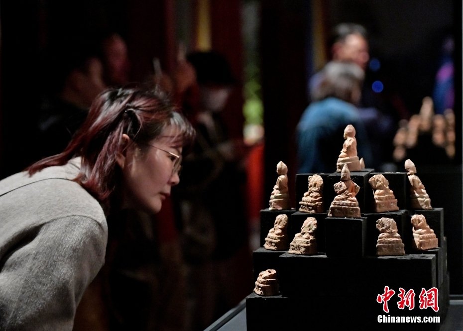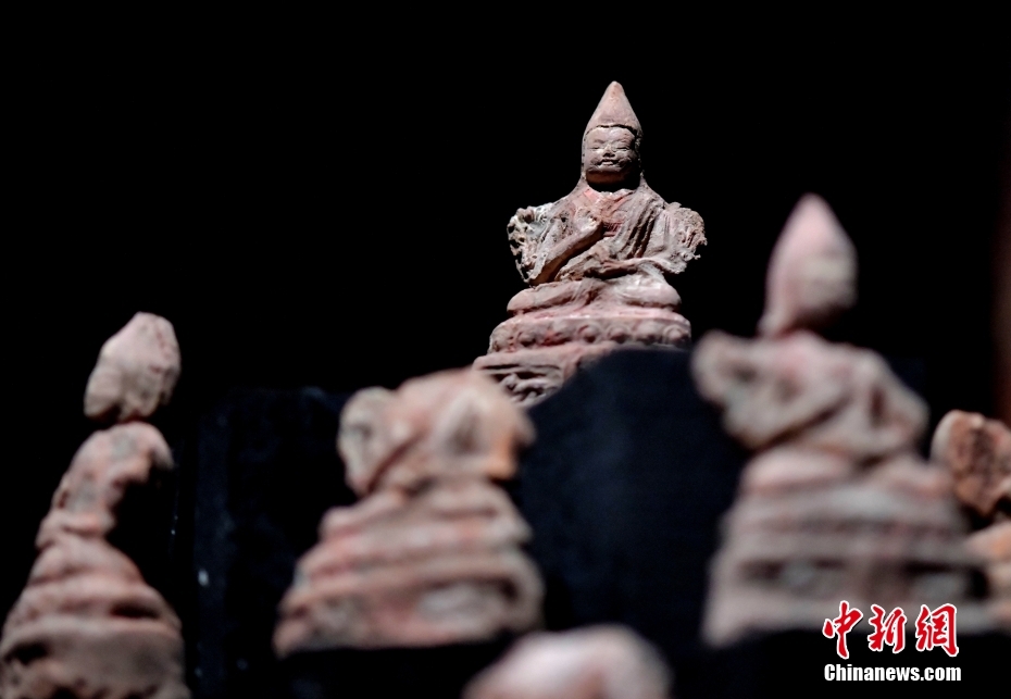 4月13日下午,“聚沙為塔——吉崩崗拉康文物回歸特別展覽”在拉薩吉本崗藝術中心開幕,以近期回歸古建的3000余件文物為主要內(nèi)容,梳理了古建歷史與文物源流。圖為展覽中的擦擦(脫模泥塑造像)。