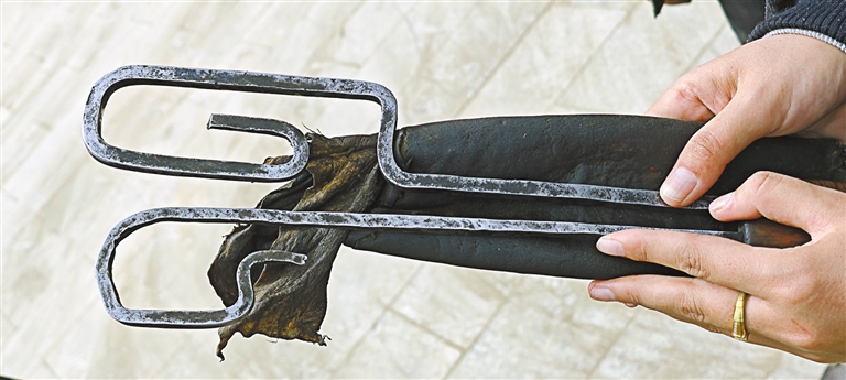 圖為八蓋鄉(xiāng)日卡村糧倉(cāng)的木鎖。