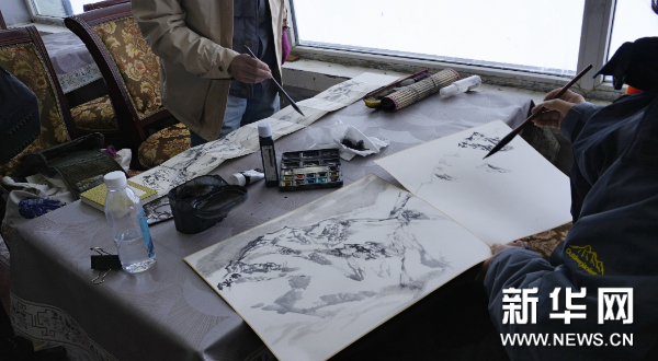 藝術(shù)家在達古冰川景區(qū)采風(fēng)創(chuàng)作
