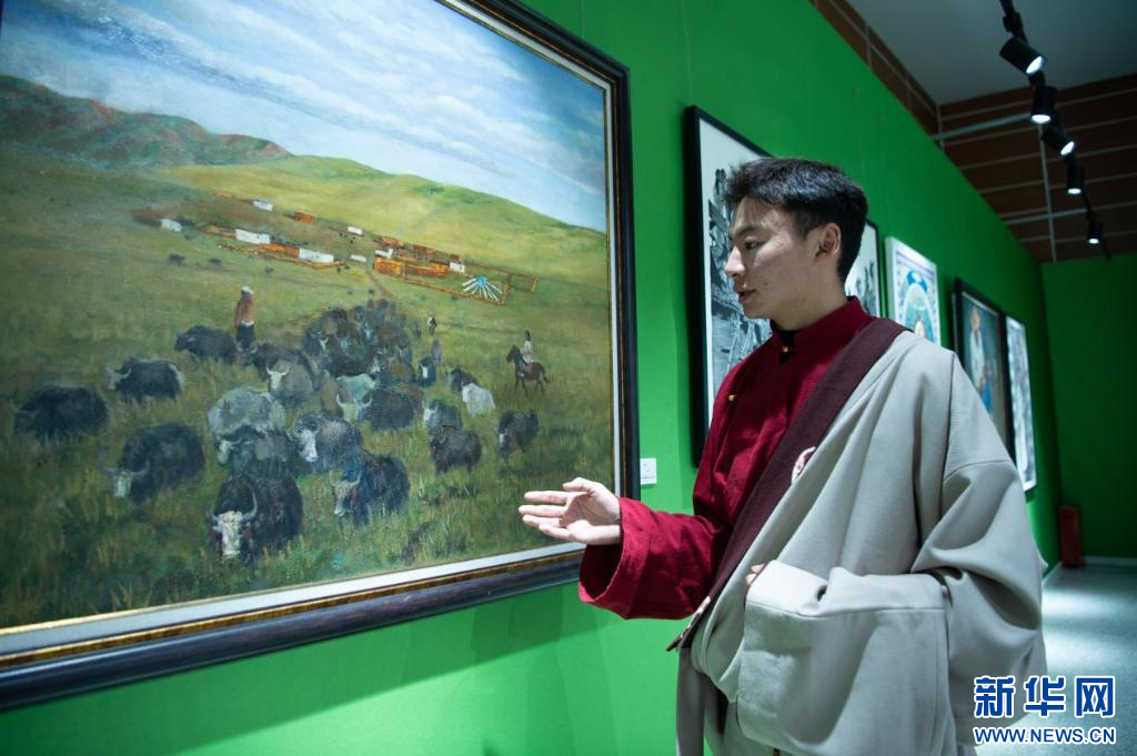 4月28日,第五屆民族團(tuán)結(jié)書法、美術(shù)、攝影、微視頻大賽作品展現(xiàn)場(chǎng)。新華網(wǎng) 旦增努布 攝