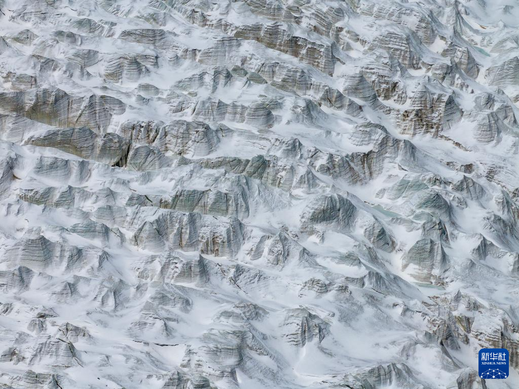 藏色崗日冰川冰塔林(無人機(jī)照片,5月11日攝)。新華社記者 丁增尼達(dá) 攝