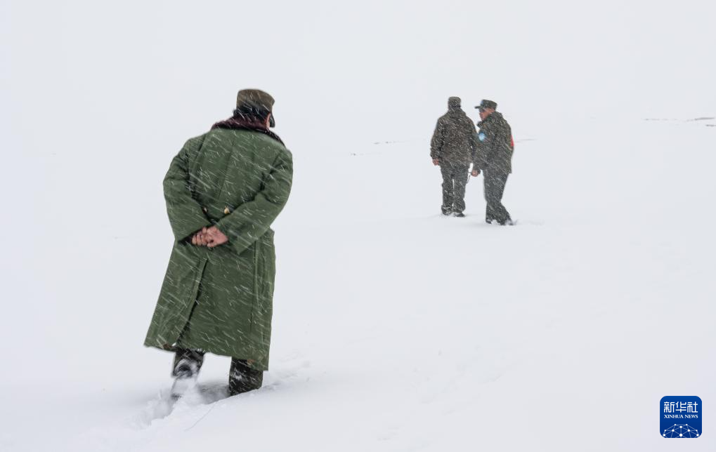野生動(dòng)物專(zhuān)業(yè)管護(hù)隊(duì)員在大雪中徒步確認(rèn)路況(5月8日攝)。新華社記者 丁增尼達(dá) 攝