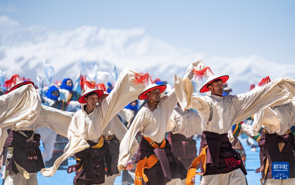 舞蹈演員在納木錯開湖活動現(xiàn)場表演(5月19日攝)。新華社記者 丁增尼達 攝