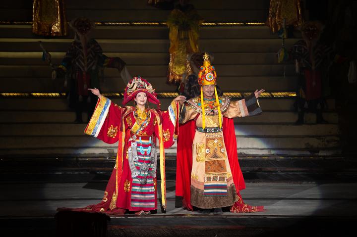 同一個(gè)夜晚,穿過近2000公里,在日光城拉薩,婉轉(zhuǎn)的唱段中,依山而建的舞臺(tái)上,大型史詩劇《文成公主》講述著盛唐時(shí)期公主從長(zhǎng)安城到邏些(拉薩舊稱)的故事,一幅民族交往交流交融的歷史畫卷就此展開。