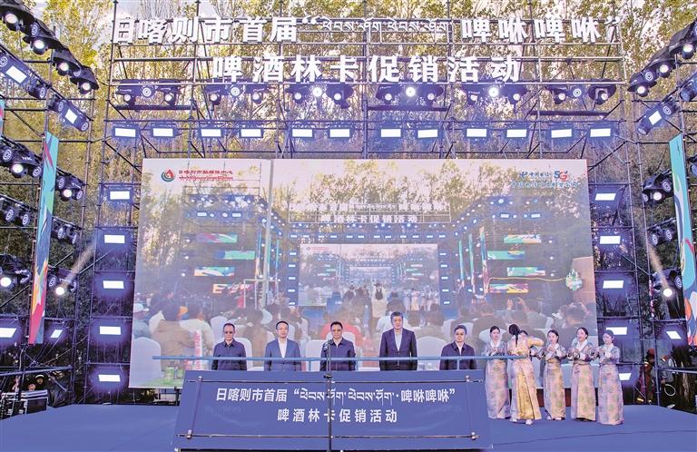 日喀則市首屆“啤咻啤咻”啤酒林卡促銷活動(dòng)啟動(dòng)儀式。記者 扎西頓珠 旦增嘎瓦 攝