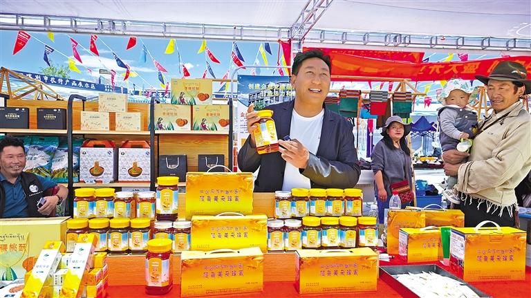 在日喀則高原農(nóng)特產(chǎn)品及尼泊爾特色產(chǎn)品展示展銷活動(dòng)上,商家在展示自家產(chǎn)品。記者 扎西頓珠 旦增嘎瓦 攝