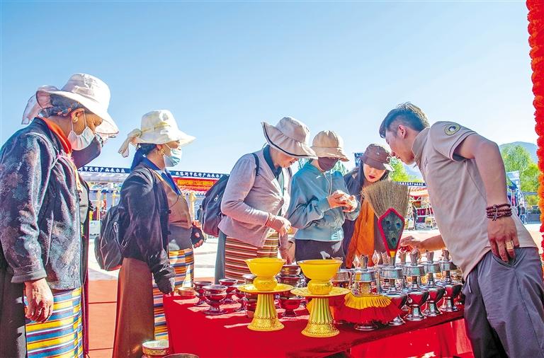 一張艷麗奪目的藏式卡墊、一只美觀透亮的玉石碗、一把精雕細(xì)琢的六弦琴、一杯醇香味濃的雞爪谷酒、一套異域風(fēng)情的尼泊爾服飾、一包沁人心脾的香料……在日喀則高原農(nóng)特產(chǎn)品及尼泊爾特色產(chǎn)品展示展銷活動(dòng)上,琳瑯滿目的本土優(yōu)質(zhì)農(nóng)特產(chǎn)品與獨(dú)具特色的尼泊爾產(chǎn)品,吸引了大量市民游客逛攤選購(gòu),一幅繁忙景象。