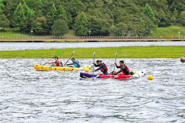 選手正在進(jìn)行200米靜水皮筏艇比賽。記者 謝筱純 攝