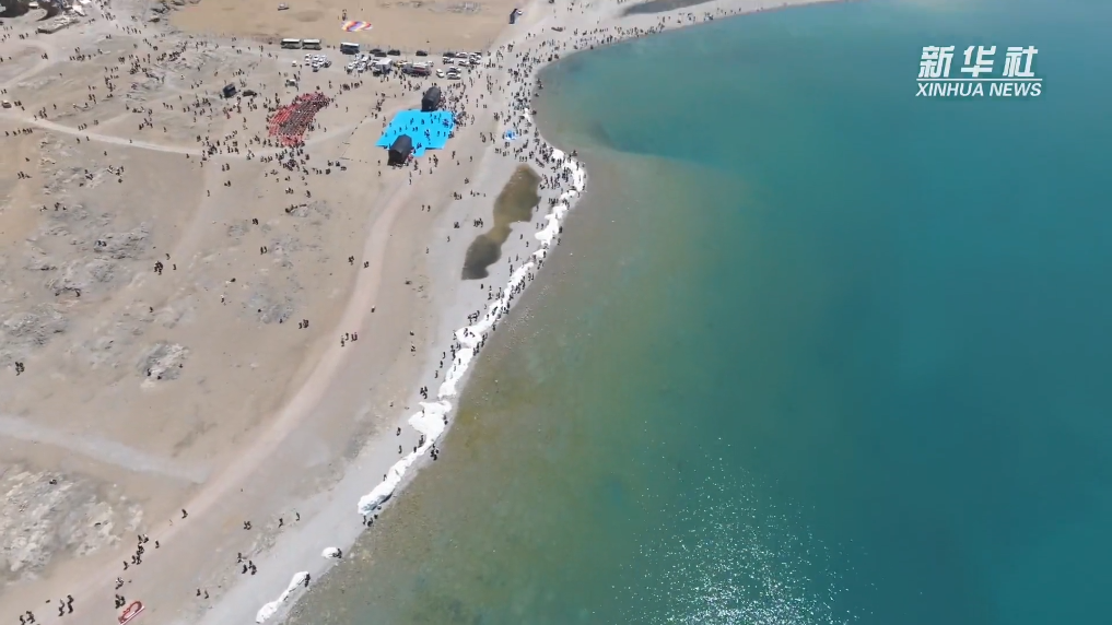 隨著氣溫的逐漸轉暖,納木錯進入開湖期。從高空俯瞰,冰面開始解凍,漂浮的冰塊散落在碧綠的湖面上,與遠處的雪山相互輝映,美麗景色讓人嘆為觀止。