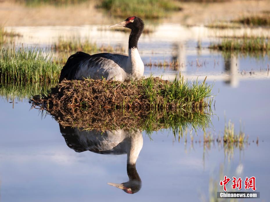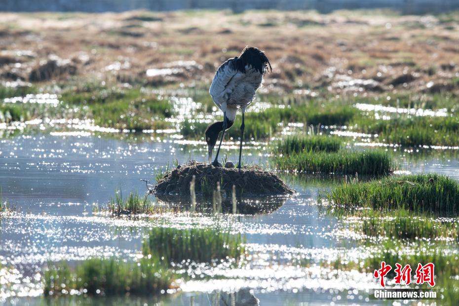 6月12日,西藏那曲市申扎縣濕地里一只黑頸鶴正準(zhǔn)備孵蛋。申扎縣,平均海拔超過4500米,是黑頸鶴在中國的主要繁殖地之一。每年4月到6月,成群的黑頸鶴會來到這里,筑巢、孵化、養(yǎng)育下一代。近年來,為了保護(hù)這些珍貴的生靈,申扎縣采取了一系列措施,設(shè)立了監(jiān)測站,對黑頸鶴的棲息地進(jìn)行24小時監(jiān)控,確保它們的繁殖不受干擾。黑頸鶴是國家一級保護(hù)動物,也是世界上唯一一種生長、繁殖在高原的鶴類。貢嘎來松 攝