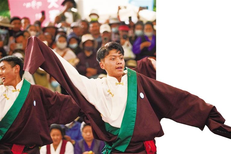 鍋莊舞又稱為“果卓”,藏語意為圓圈歌舞,2006年鍋莊舞列入第一批中國國家級非物質(zhì)文化遺產(chǎn)名錄。在拉薩,鍋莊舞是當?shù)匦蓍e的一大特色。雖然決賽晚上6點才開始,但絲毫不影響市民群眾對鍋莊舞的熱愛,現(xiàn)場座無虛席,人潮涌動,不時爆發(fā)出陣陣掌聲、吶喊聲,將比賽氣氛推向高潮。