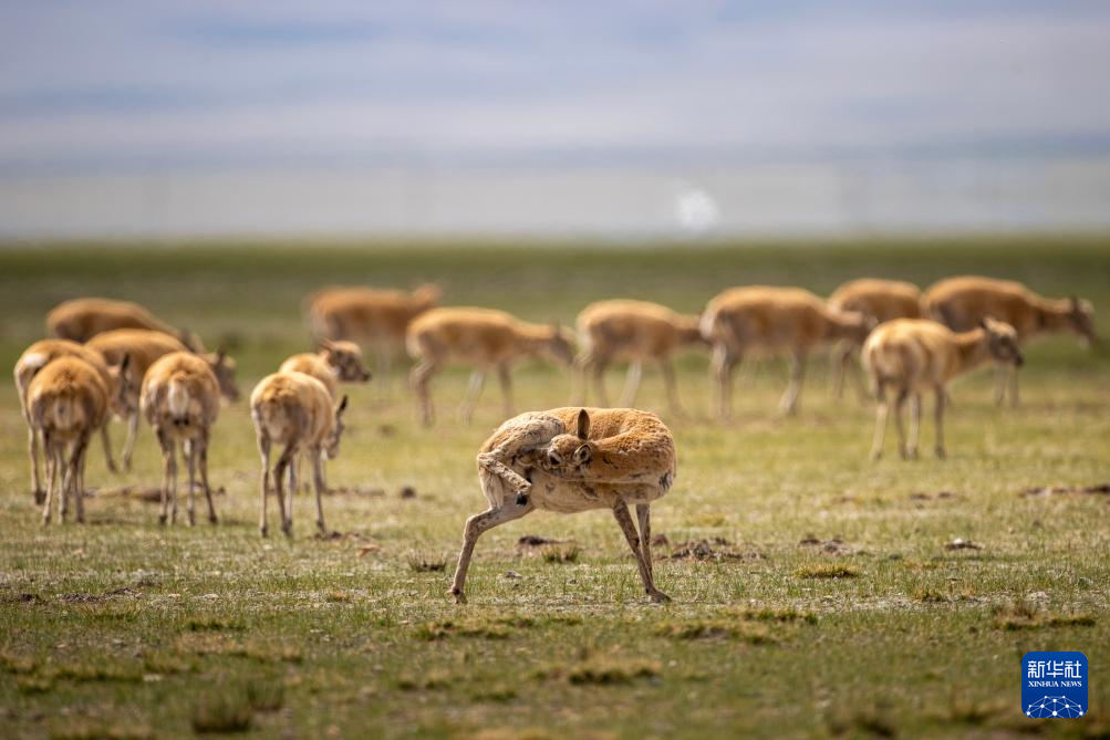 魯確塘草原上的藏羚羊(6月17日攝)。新華社記者 晉美多吉 攝??