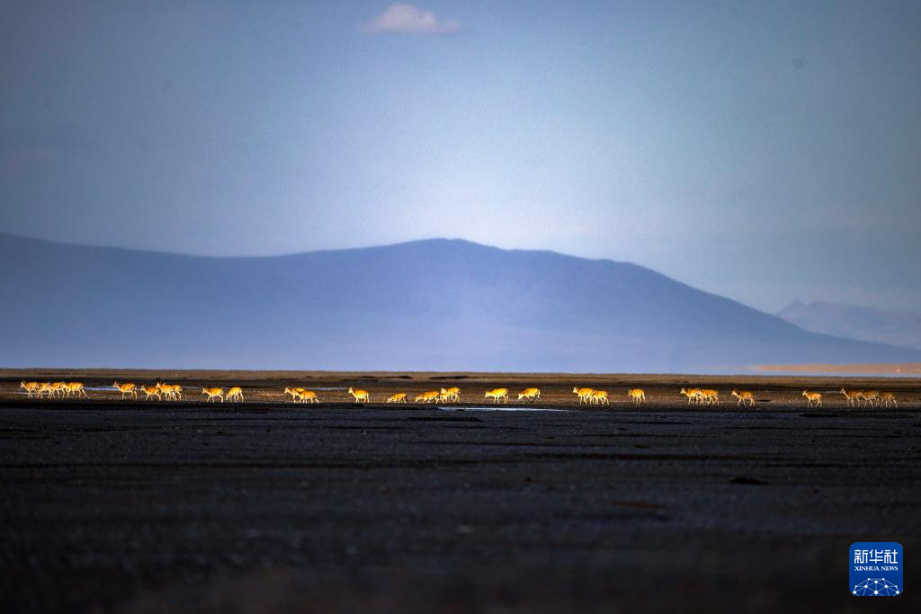 6月13日傍晚在羌塘國家級自然保護區(qū)拍攝的遷徙中的藏羚羊。新華社記者 費茂華 攝