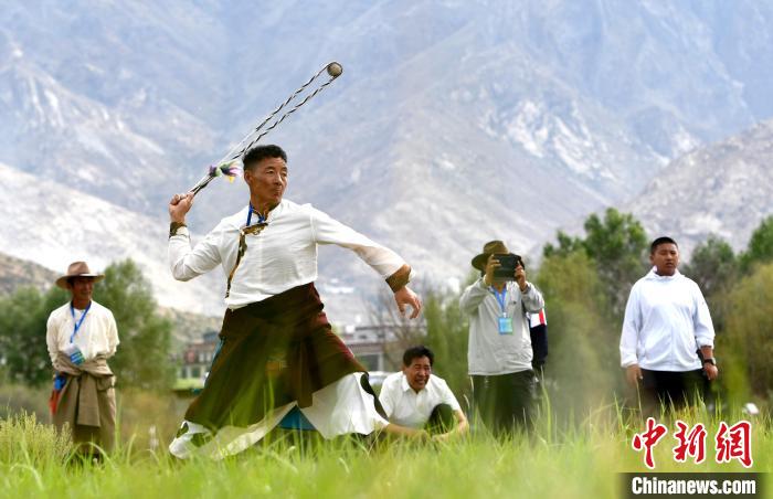 當(dāng)斜挎在身的放牧工具變身運(yùn)動(dòng)會(huì)上的比賽項(xiàng)目,參賽選手和觀眾都覺得難度提高了不少?!捌綍r(shí)放牧,用古朵甩石頭只是一個(gè)大概的方向,能憑借聲音指揮牲畜或者嚇退野獸就行。比賽可不是這樣,得擊中60米外的目標(biāo)。”盡管難度不小,來自西藏拉薩市林周縣唐古鄉(xiāng)的多吉赤多依舊很高興能參加這樣的比賽。