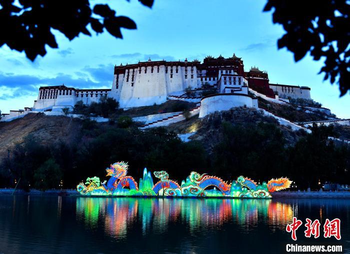 7月1日晚,布達拉宮腳下的宗角祿康公園“點亮拉薩—秦淮燈會”亮燈。燈會設(shè)17個點位、50個燈組,將持續(xù)至9月30日。圖為宗角祿康公園里的龍燈。中新社記者 李林 攝