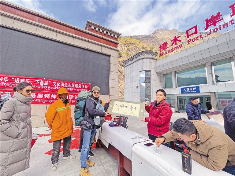 圖為日喀則市文聯(lián)在樟木口岸舉行送新春祝?;顒?dòng)。