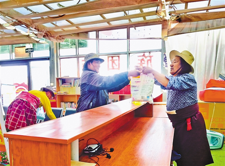 圖為改則縣洞措鄉(xiāng)次日果來(lái)村村民在積分超市兌換生活物資。記者 洛桑旦增 攝