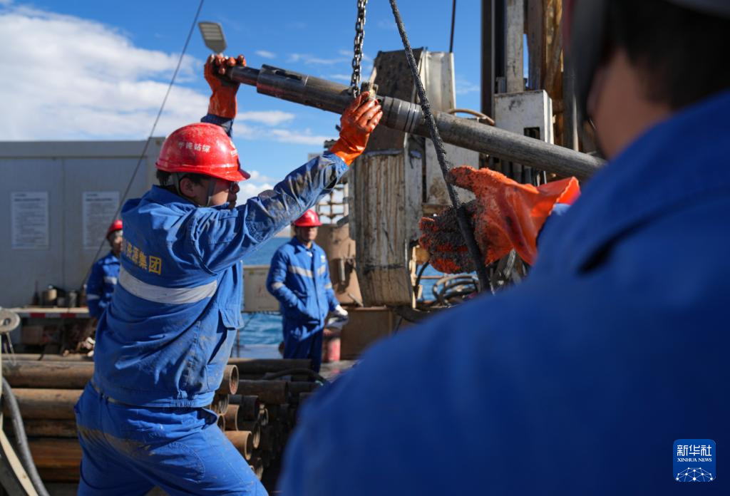 在海拔超過(guò)4700米的西藏納木錯(cuò),湖泊巖芯鉆探工作正在開展中。