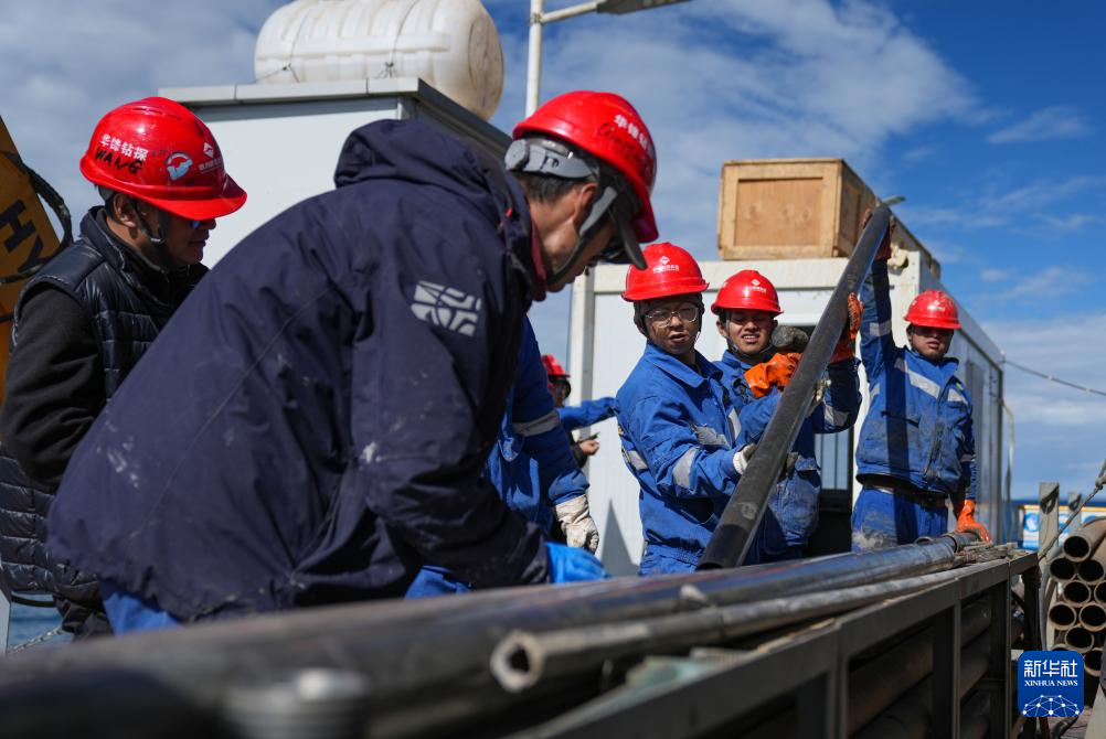 7月11日,鉆探人員在操作設(shè)備,準(zhǔn)備進(jìn)尺作業(yè)。新華社記者 晉美多吉 攝