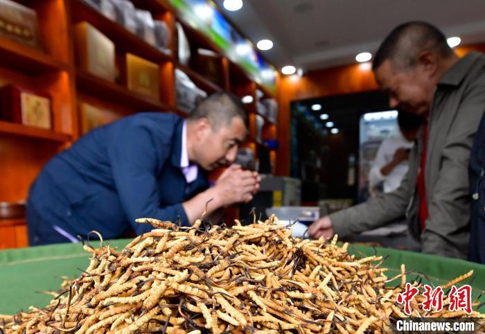 圖為7月16日,蟲草商們在挑選蟲草。中新社記者 李林 攝