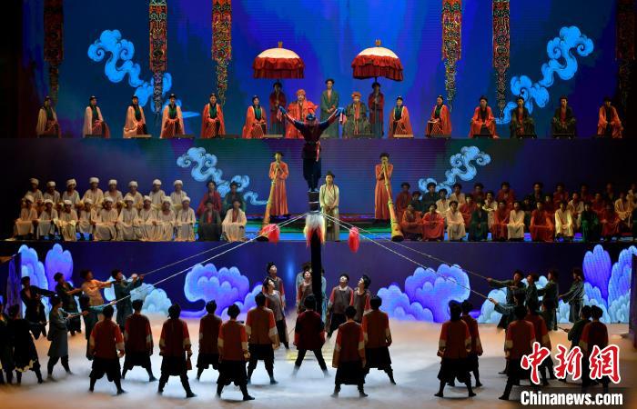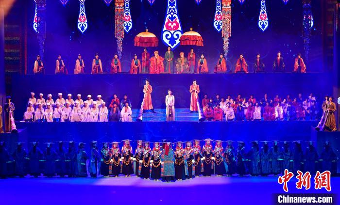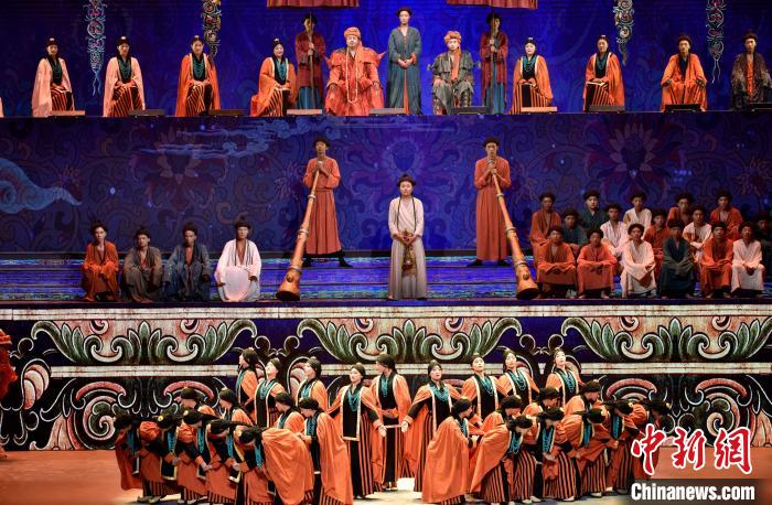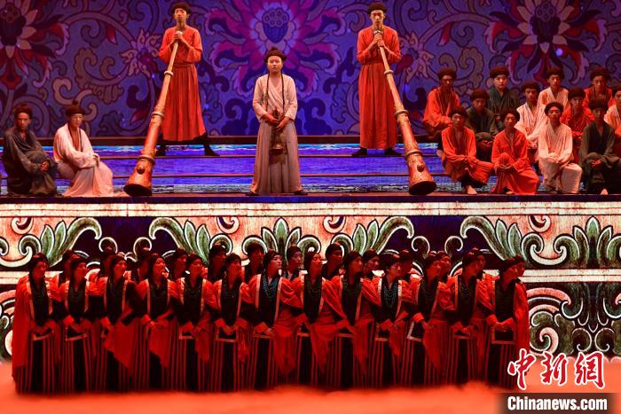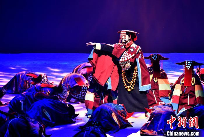 7月19日晚,《緣起象雄·古格遺風(fēng)》情景歌舞詩劇在西藏拉薩上演。該劇通過歌、舞、詩、畫等多種藝術(shù)形式,帶領(lǐng)觀眾身臨其境地感受古象雄文化的獨(dú)特魅力和古格王朝的輝煌與傳奇。圖為《緣起象雄·古格遺風(fēng)》演出現(xiàn)場。中新社記者 李林 攝