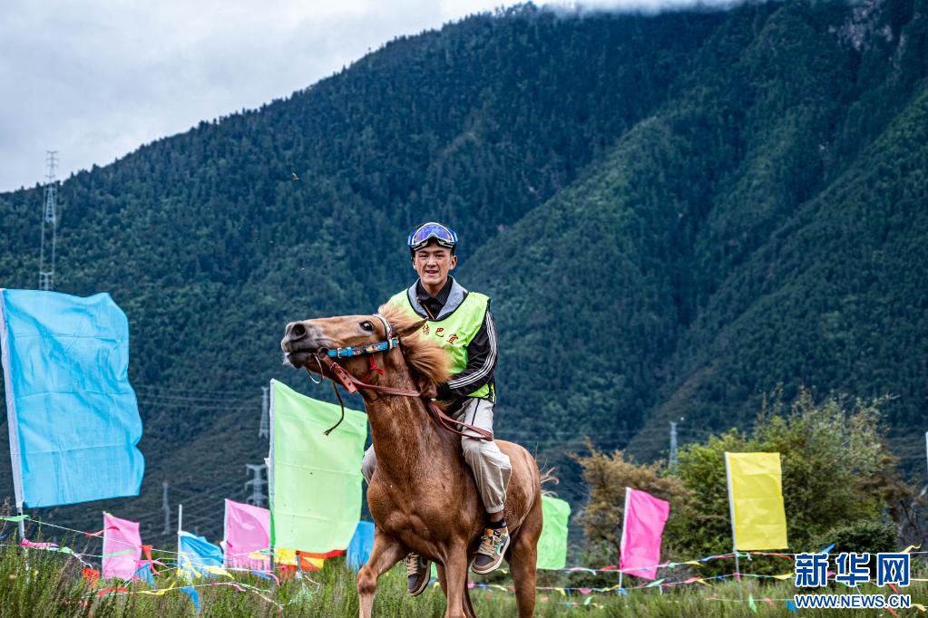 西藏林芝市林芝鎮(zhèn)第七屆尼洋旅游文化之民俗賽馬藝術(shù)節(jié)活動(dòng)走馬比賽(7月22日攝)。新華網(wǎng) 旦增努布 攝