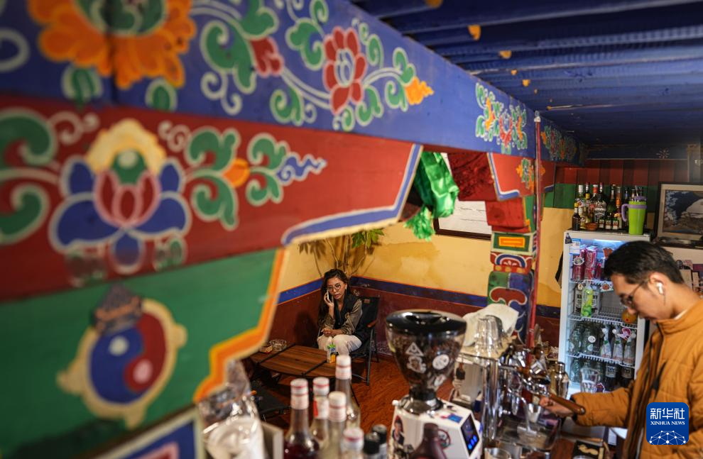 位于八廓南街的貢桑孜大院,擁有百年歷史的藏式樓房,如今煥發(fā)出新的生機(jī)。走進(jìn)大院,一樓的西北角,一間藏式裝修風(fēng)格的咖啡館內(nèi),顧客穿梭其中,咖啡香氣四溢,讓這座古老的大院充滿(mǎn)活力。
