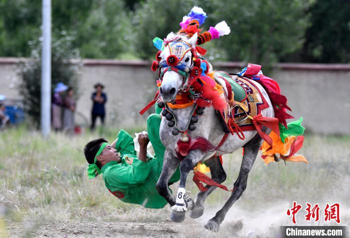 7月27日,西藏拉薩市桑達(dá)村迎來“望果節(jié)”,村民們舉行賽馬活動慶祝?!巴?jié)”是西藏傳統(tǒng)的豐收節(jié),具體日期隨各地莊稼成熟的時(shí)間而變化。“望果節(jié)”期間,按照習(xí)俗,各地都會舉辦賽馬比賽。圖為騎手進(jìn)行馬術(shù)表演。中新社記者 李林 攝
