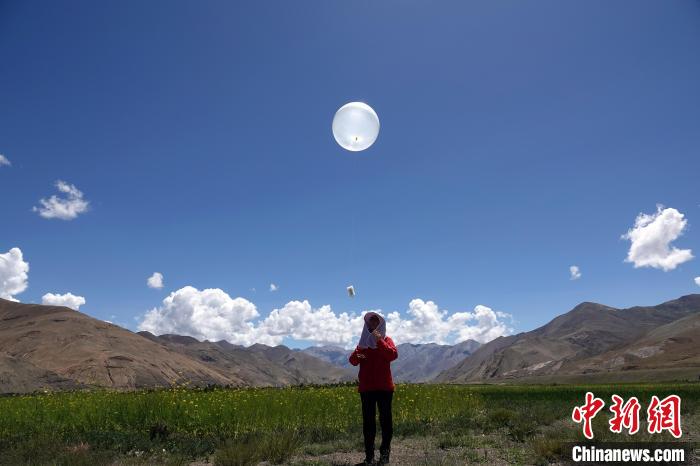 8月1日,作為二次青藏科考一項(xiàng)重要組成部分,珠峰地區(qū)首次開(kāi)展航空平臺(tái)水-熱-碳通量觀測(cè)試驗(yàn)正式啟動(dòng),圖為科考隊(duì)員施放觀測(cè)氣球。中新網(wǎng)記者 孫自法 攝