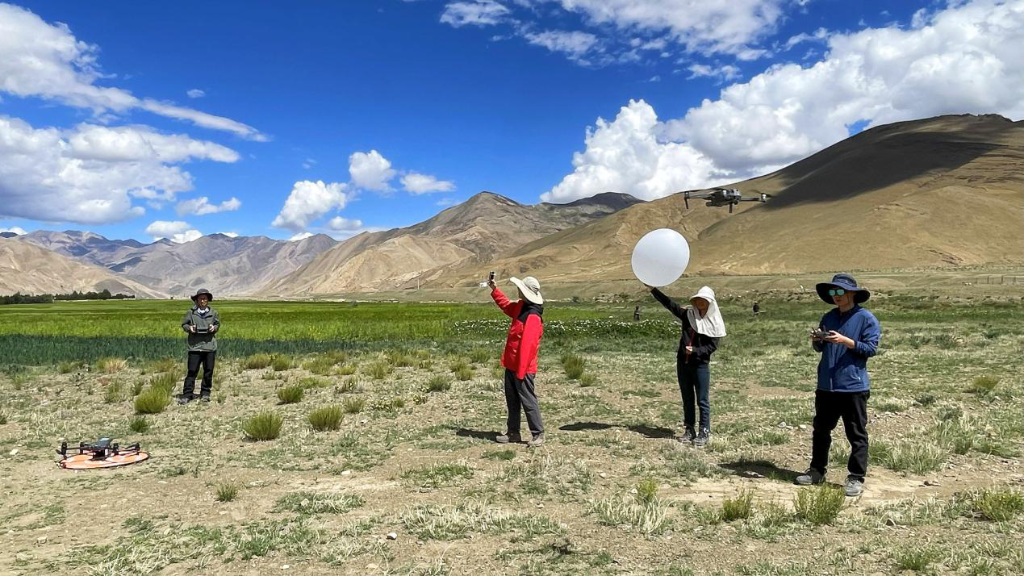 團(tuán)隊(duì)開展探空氣球大氣廓線觀測和無人機(jī)熱紅外影像獲取。(中國科學(xué)院空天信息創(chuàng)新研究院供圖)