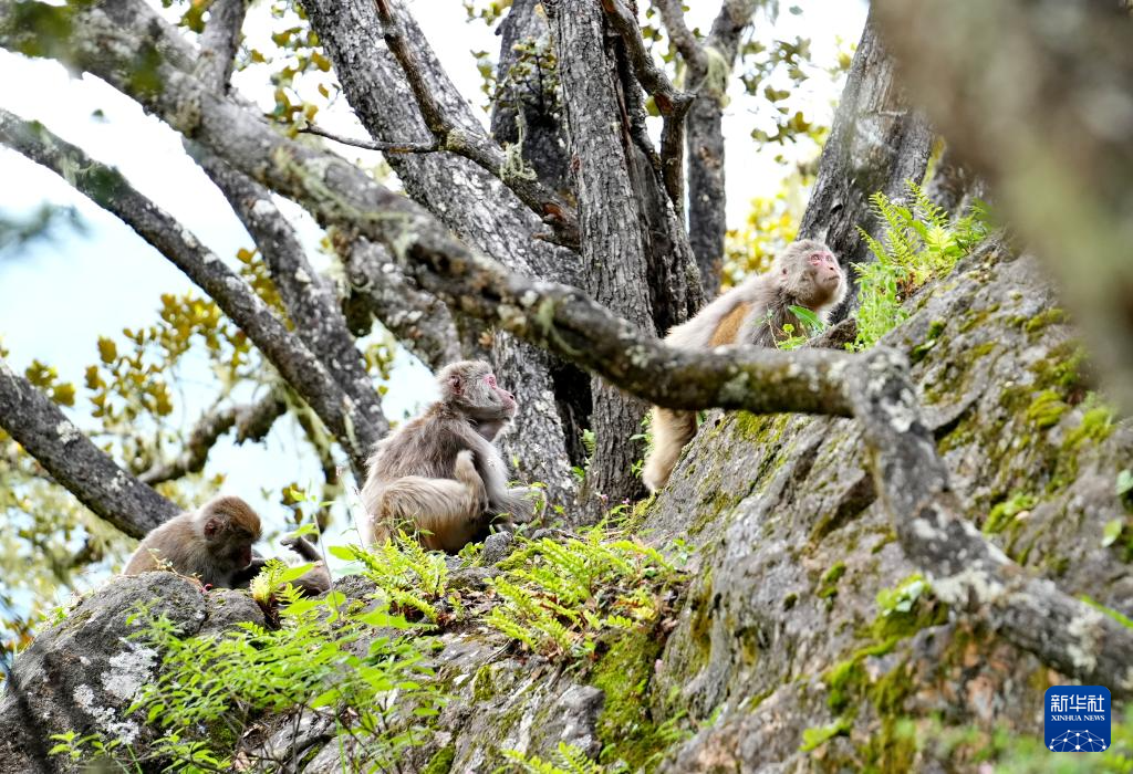巴松措旅游風景區(qū)里的藏獼猴(8月2日攝)。新華社記者 張汝鋒 攝