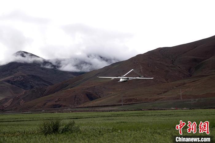 8月8日,珠峰地區(qū)水-熱-碳通量觀測(cè)試驗(yàn)無人機(jī)起飛。中新網(wǎng)記者 孫自法 攝