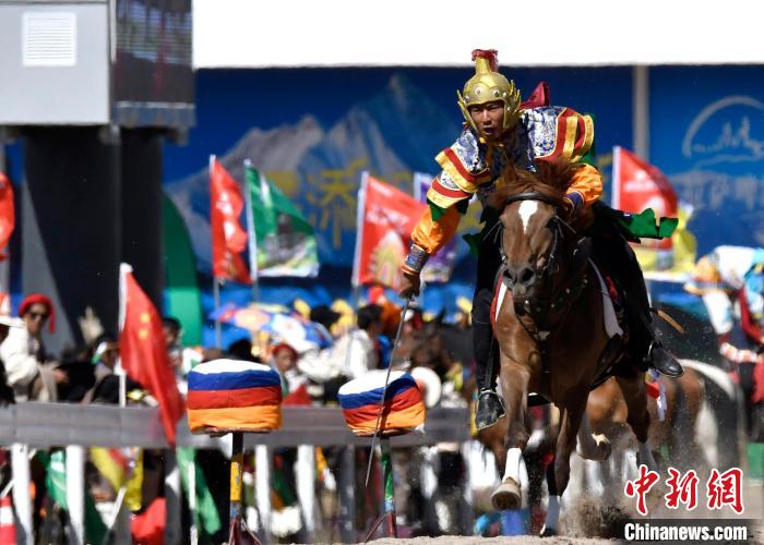 8月10日,2024年那曲恰青賽馬節(jié)暨第三屆“鄉(xiāng)村振興 那曲奮進”活動開幕式在那曲市賽馬場舉行,精彩的文藝歌舞、馬術(shù)表演等展示著羌塘草原上的無窮魅力和活力。圖為開幕式上的馬術(shù)表演。中新社記者 李林 攝
