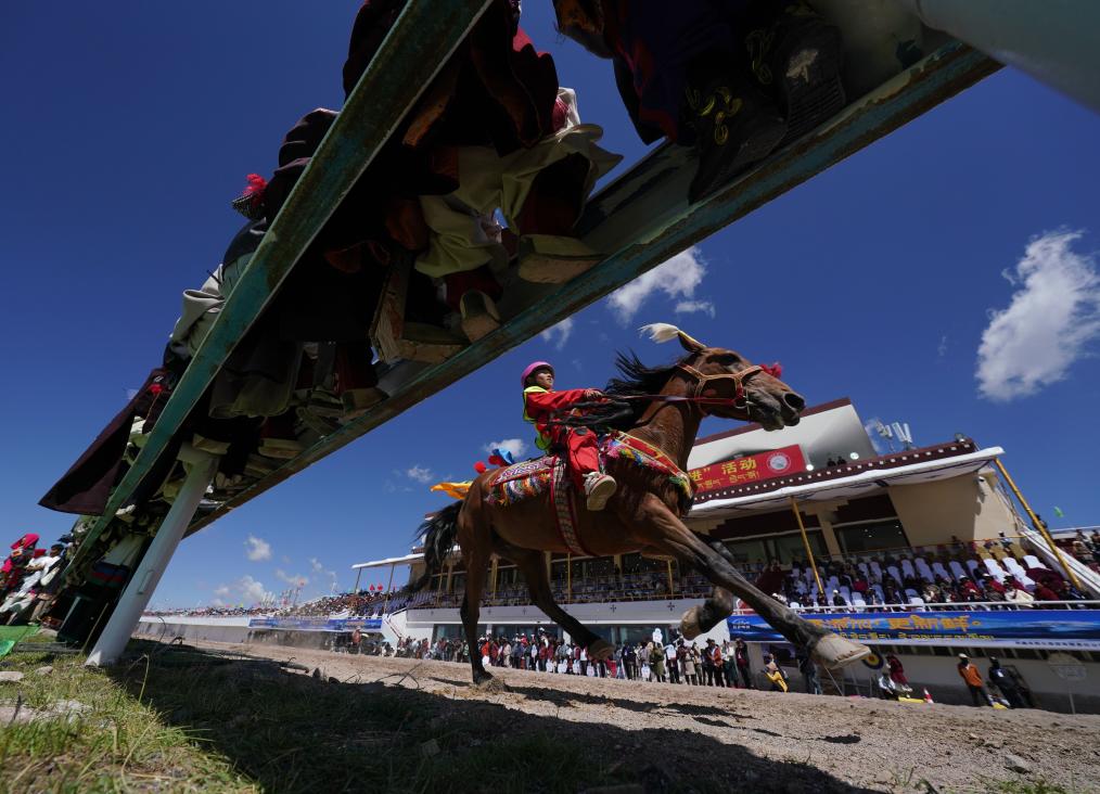 藏北牧民有多愛馬?每匹駿馬都裝飾著精致多彩的綢緞或毛毯,鬃毛和尾巴也梳起俊美的發(fā)辮;為避免用力時(shí)弄痛馬兒,一些小騎手脫去運(yùn)動(dòng)鞋,跨上馬鞍時(shí)只穿襪子。