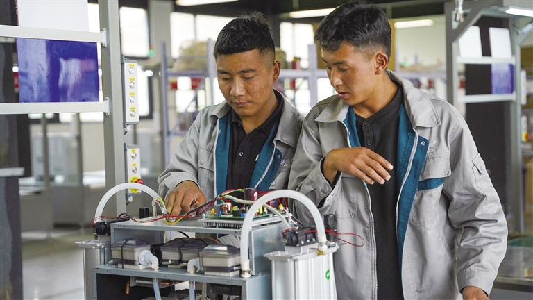 西藏清匠電器科技有限公司執(zhí)行董事劉炎林介紹,公司自2019年落地山南市乃東區(qū)以來,除了吸納本地大學生就業(yè)外,還堅持為當地群眾搭建“家門口”的就業(yè)平臺,截至目前,已經帶動當地100余人就業(yè)。