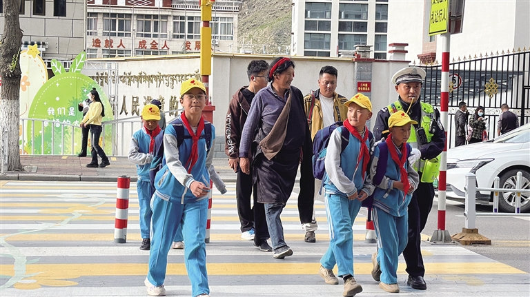 此外,拉薩交警還利用每日“護(hù)學(xué)崗”時間,主動引導(dǎo)學(xué)生正確過馬路、認(rèn)識交通信號燈,提醒學(xué)生不在馬路上嬉戲、追逐打鬧,不乘坐三輪摩托車等不規(guī)范車輛,并向接送學(xué)生的家長講解接送孩子途中應(yīng)注意的安全事項,告誡學(xué)生家長以身作則,杜絕橫穿馬路、闖紅燈等交通陋習(xí),共同營造安全、暢通、文明和諧的道路交通環(huán)境?!拔覀児膭詈⒆觽儗W(xué)到的交通安全知識帶回家,充分發(fā)揮‘小手拉大手’作用,向家人宣傳道路交通安全知識,強(qiáng)化家長、學(xué)生安全意識和自我保護(hù)意識。”馬定雄說。