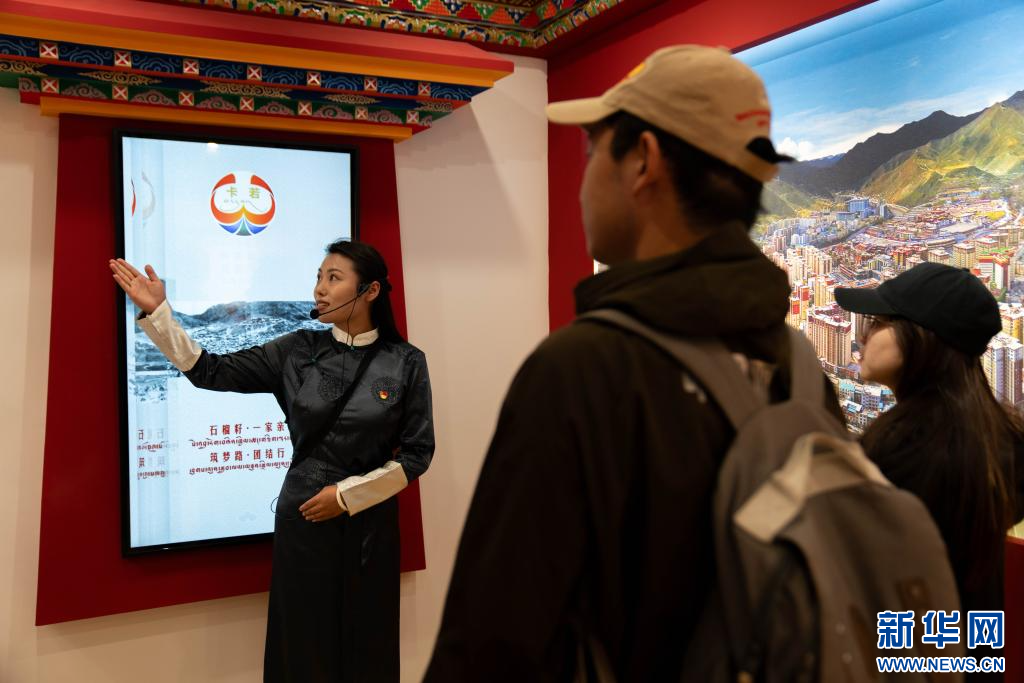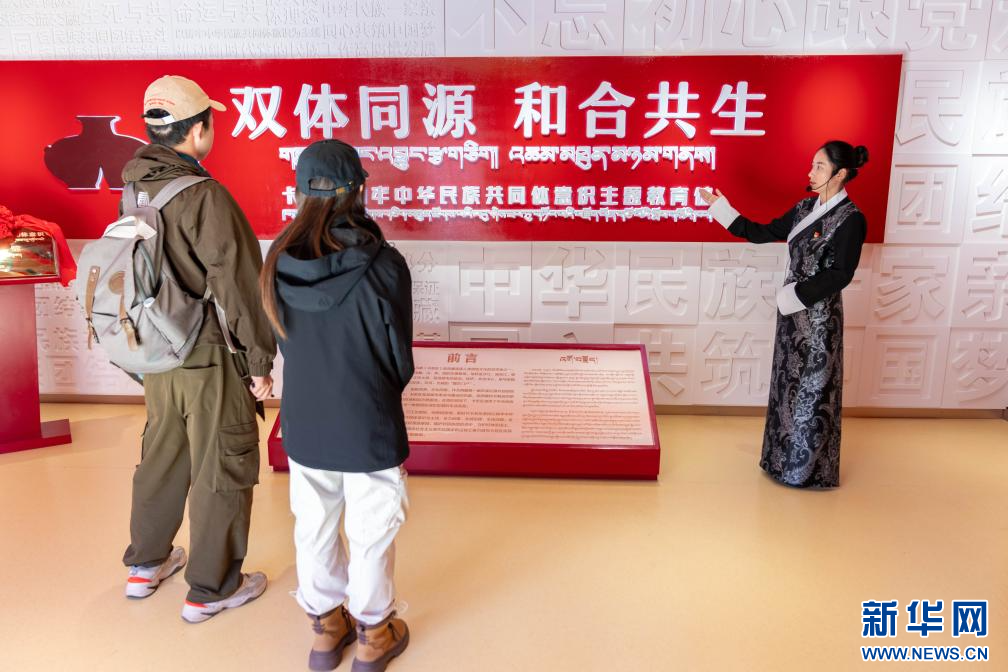 主題教育館的講解員嘎西卓嘎在講解民族團(tuán)結(jié)故事(8月19日)。新華社記者 旦增尼瑪曲珠攝