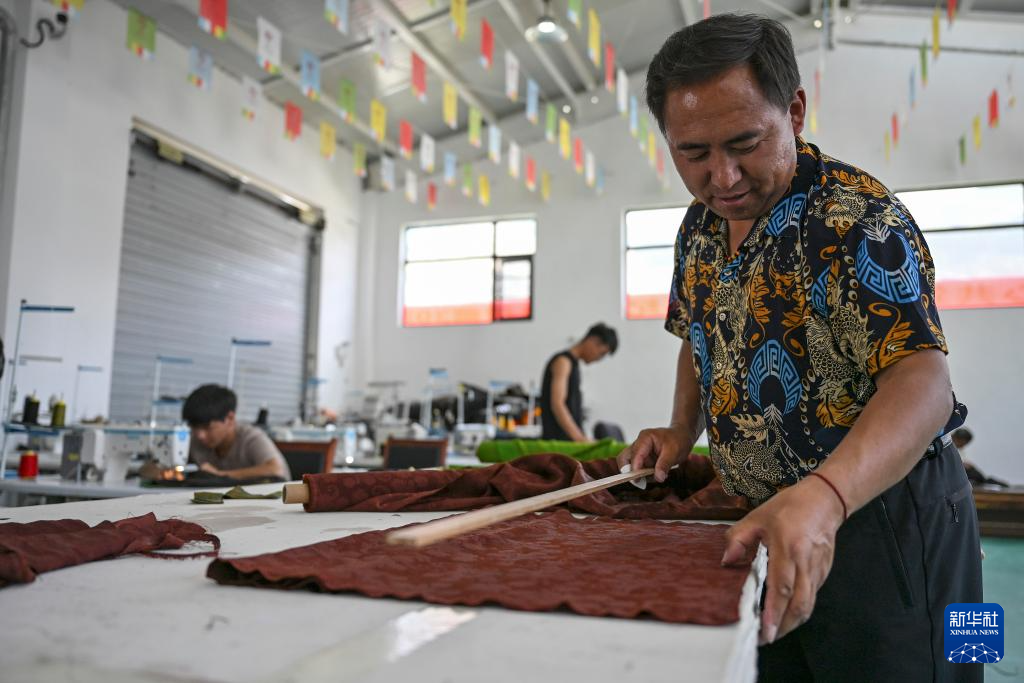 9月1日,在西藏日喀則市仁布縣特色產(chǎn)業(yè)孵化園,亞德細褐羊毛織品農(nóng)民專業(yè)合作社工作人員在車間里準備剪裁布匹。新華社記者 孫瑞博 攝