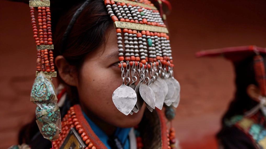 普蘭縣科迦村里有7戶人家保存著7套祖?zhèn)鞣?,一套重達(dá)25公斤,裝飾有黃金、白銀、松石、瑪瑙、珊瑚、珍珠等,承載和沉淀了百年時(shí)光,堪稱“穿在身上的千年史”。