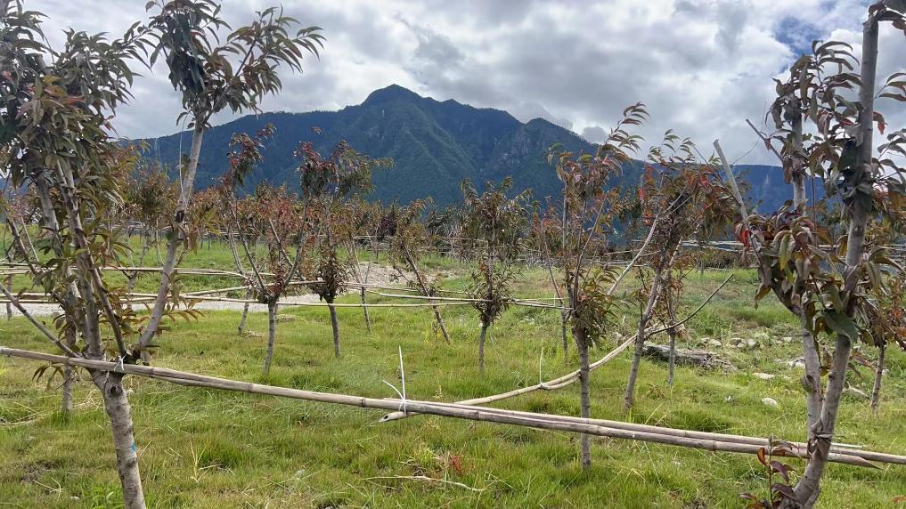 9月6日,在西藏林芝市巴宜區(qū)林芝鎮(zhèn)嘎拉村村外的同一片河灘上,植被覆蓋黃沙,桃樹(shù)枝葉漸長(zhǎng)。(尼瑪曲吉 攝)