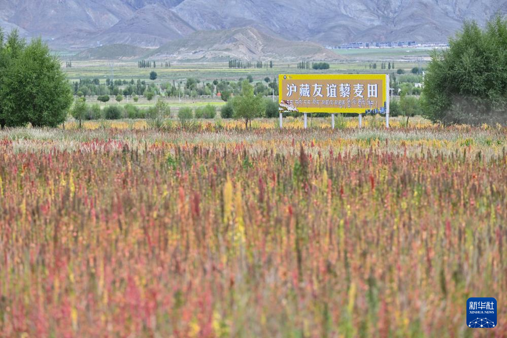 這是在西藏日喀則市薩迦縣扯休鄉(xiāng)拍攝的高原藜麥種植基地內(nèi)的藜麥田(9月4日攝)。新華社記者 孫瑞博 攝