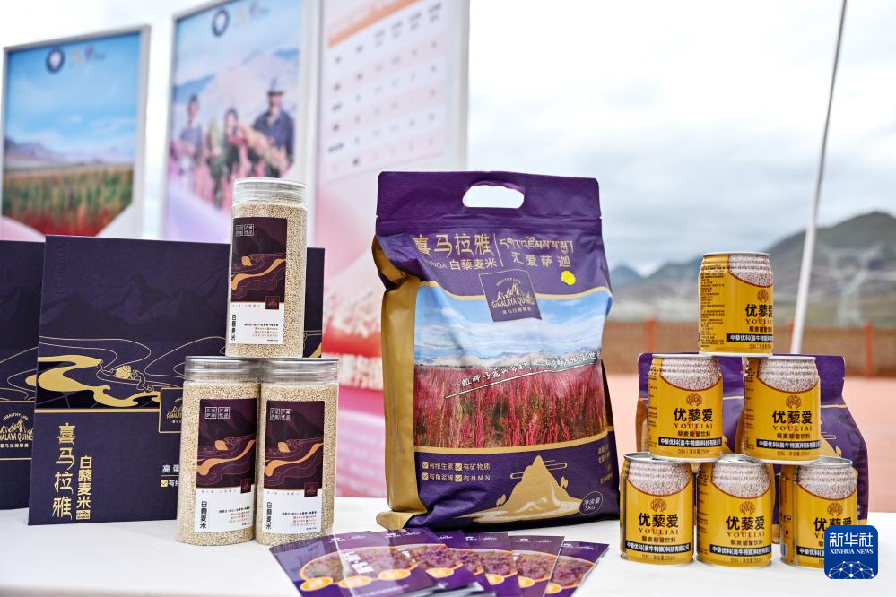這是在西藏日喀則市薩迦縣扯休鄉(xiāng)拍攝的利用當(dāng)?shù)爻霎a(chǎn)的藜麥為原料加工生產(chǎn)的藜麥產(chǎn)品(9月4日攝)。新華社記者 孫瑞博 攝