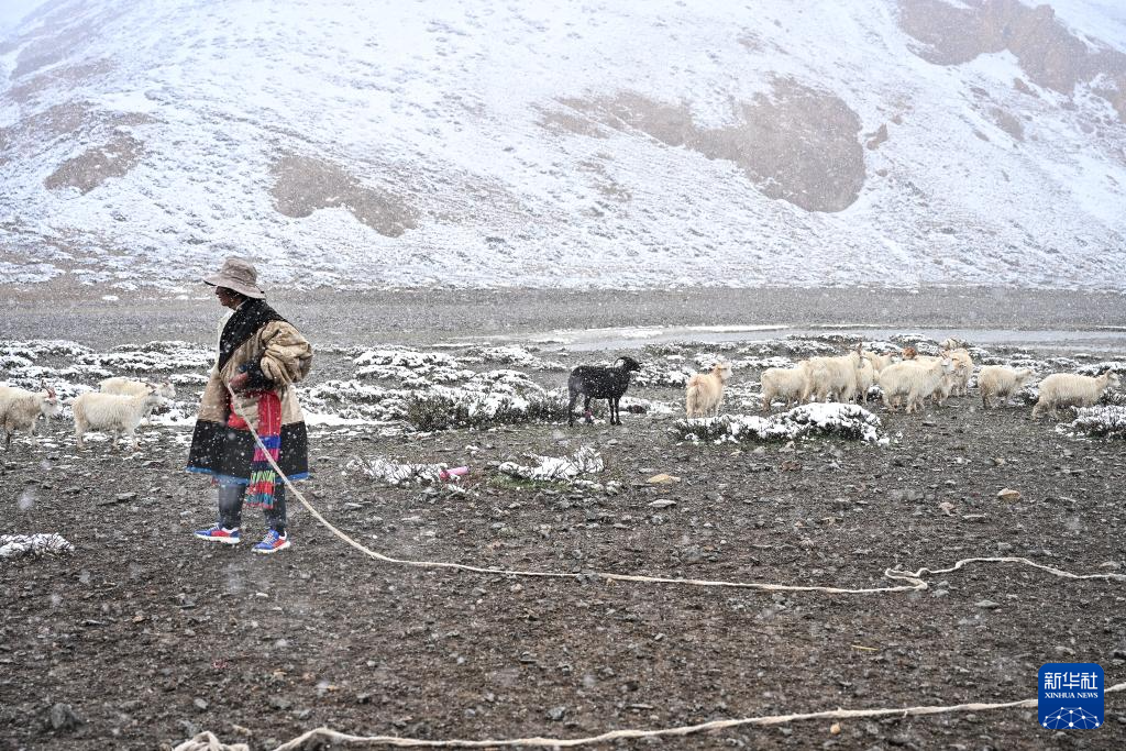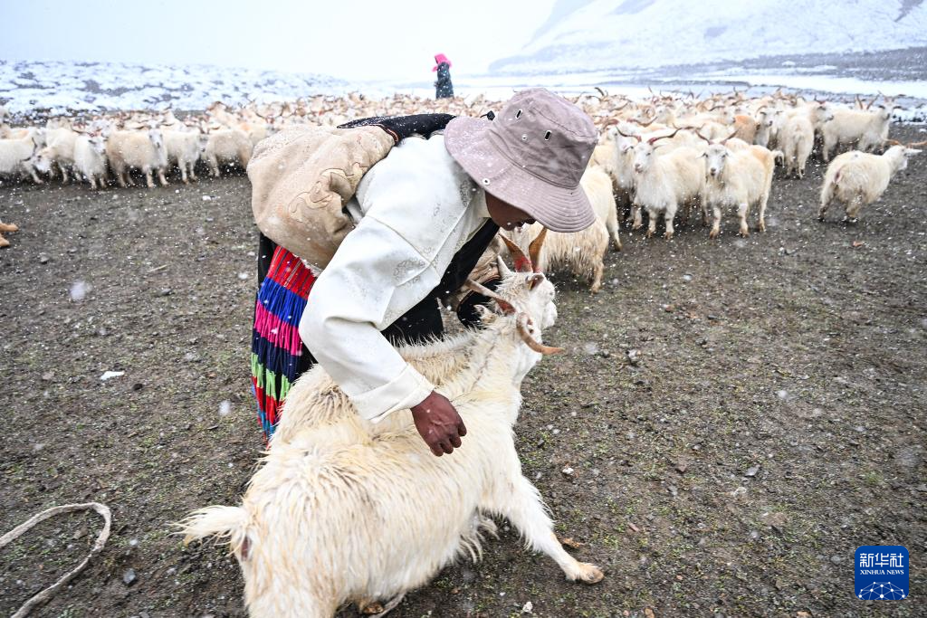 9月13日,在日土縣龍門卡村白絨山羊擴(kuò)繁場,飼養(yǎng)員收攏白絨山羊,準(zhǔn)備給它們擠奶。新華社記者 孫瑞博 攝