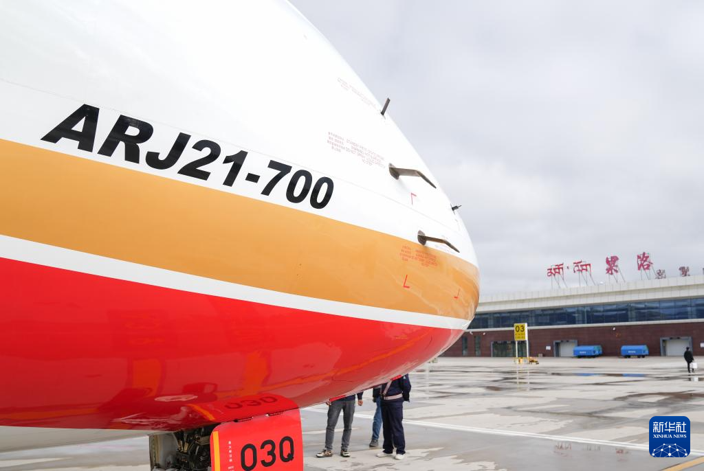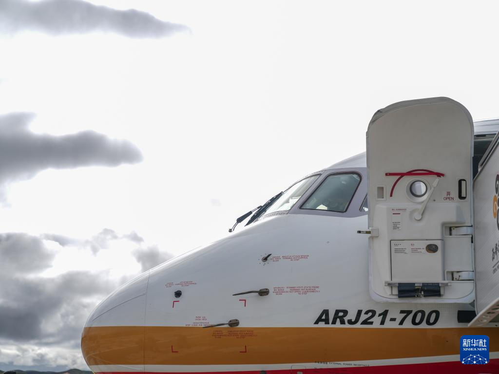 9月21日,國產(chǎn)商用飛機(jī)ARJ21飛抵青海果洛瑪沁機(jī)場(chǎng)。新華社記者 丁汀 攝