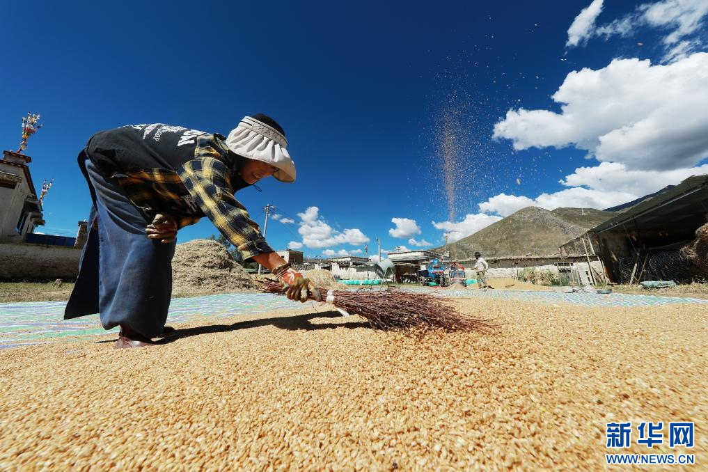 金秋九月,風吹麥浪、穗粒飽滿。連日來,在拉薩市墨竹工卡縣金黃色的農(nóng)田里,處處可見勤勞的農(nóng)民們忙碌著,收割小油菜和青稞,晾曬、搬運、儲藏,確保糧食顆粒歸倉。