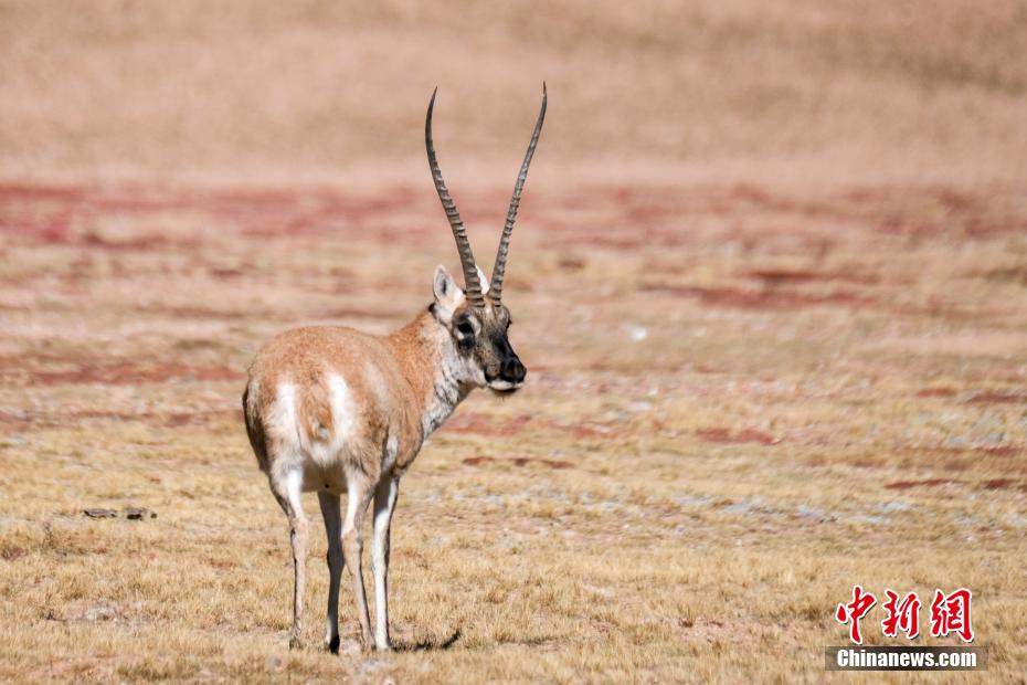 圖為10月3日,西藏那曲雙湖縣的草原上,一只藏羚羊回望“鏡頭”。中新社記者 江飛波 攝