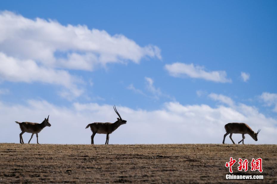 西藏羌塘草原位于昆侖山脈、唐古拉山脈和岡底斯山脈之間,是野生動植物的天堂。近日,中新社記者探訪西藏羌塘草原腹地那曲市雙湖縣,看到當?shù)夭亓缪颉⒉匾绑H、藏原羚等野生動物成群覓食,悠然自得。