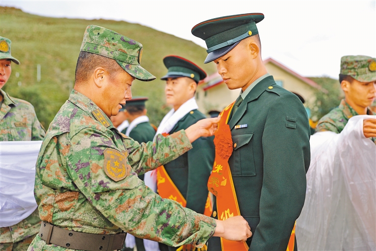 “昆木加雖然環(huán)境艱苦,但在這里并不缺乏溫暖……”在哨所里一幕幕暖心的畫面在蔣林龍腦海中浮現(xiàn)。初到哨所,班長王思誠替他端來一盆熱騰騰的洗腳水;第一次站哨,老兵無微不至地幫帶;第一次巡邏,在高寒缺氧環(huán)境下,戰(zhàn)友們輪流背著自己下山;當班長那年,班里的戰(zhàn)士偷偷地為他準備生日晚會……